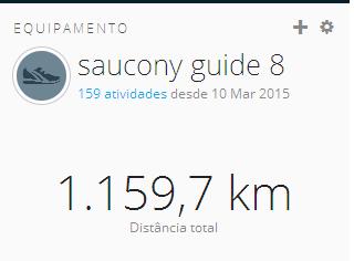Os que possuo actualmente são o Guide 8 (modelo para pronador), adquiridos em Março deste ano. Desde então já fizeram 1.159,7km: